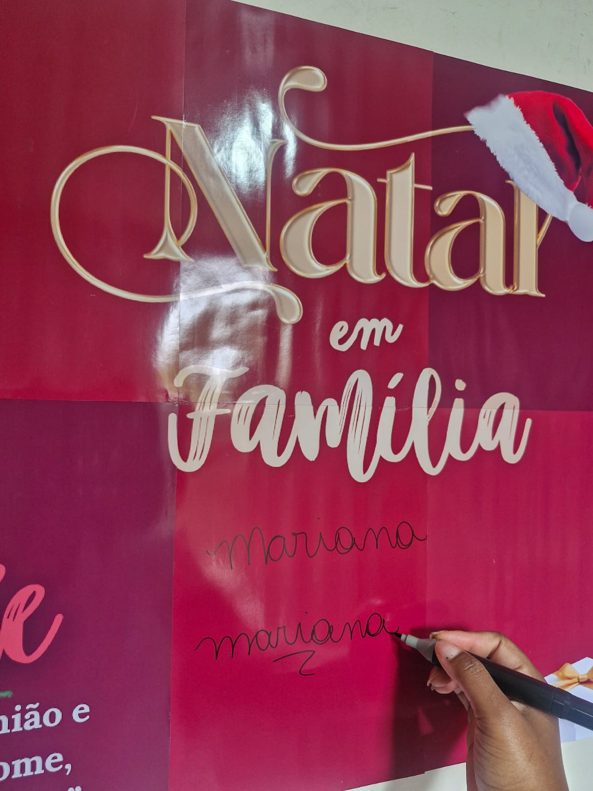 👉 Cada familiar escreve seu nome, mostrando que faz parte da história da família.