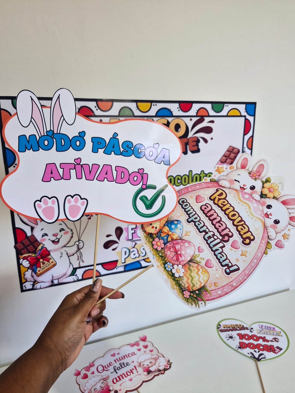 ✔ Elementos visuais fofos e atrativos (tema Páscoa)