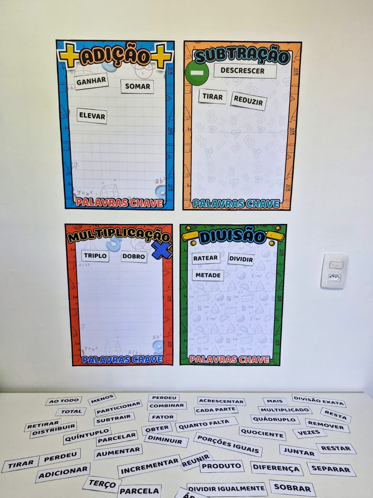 Durante a utilização, professor e alunos constroem juntos um dicionário com palavras-chave essenciais para resolução de situações-problema, facilitando a interpretação e tomada de decisão.