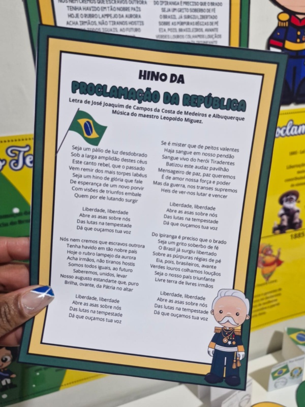 📜 Painel Hino da República com personagem (9 folhas A4)