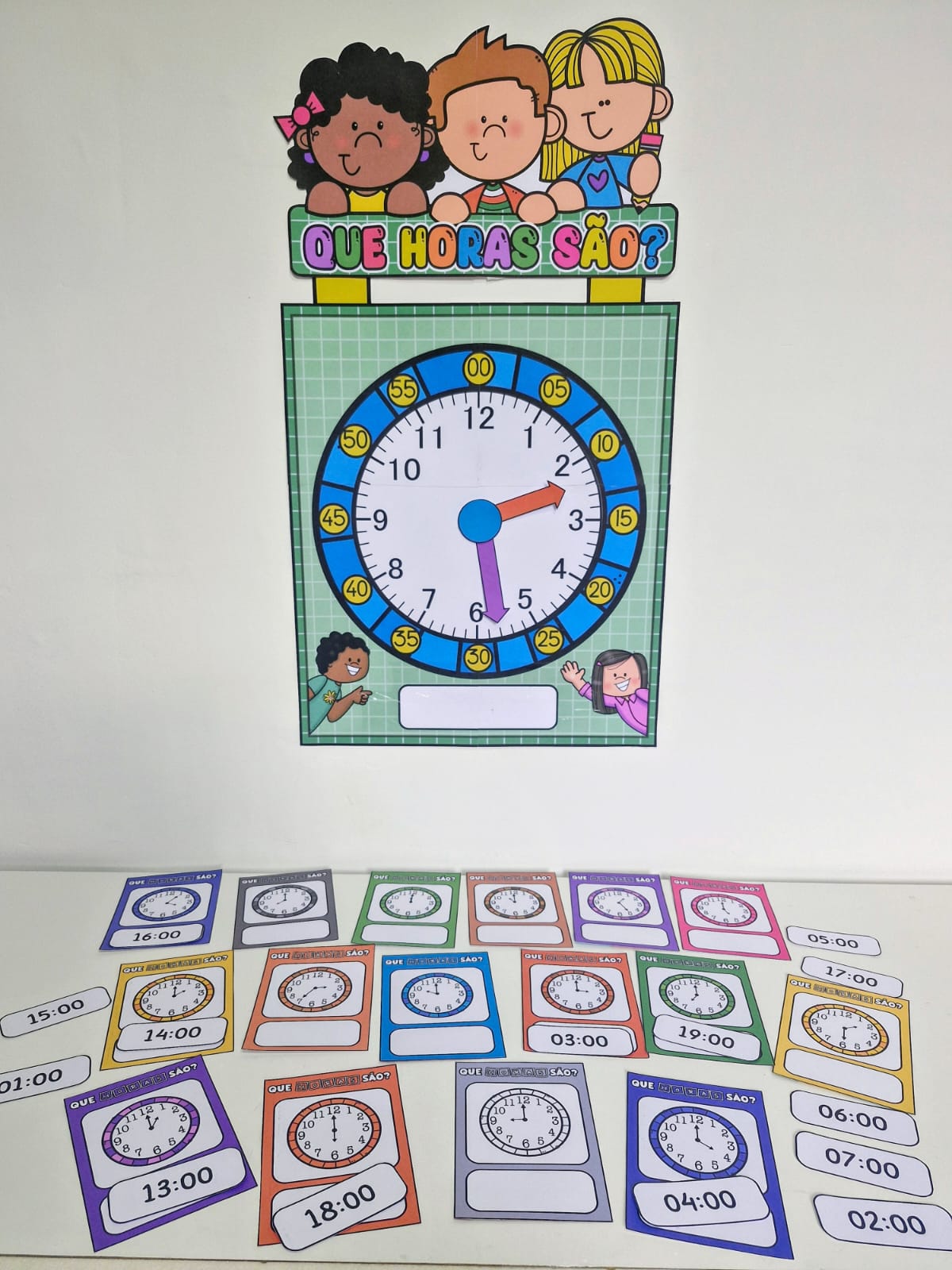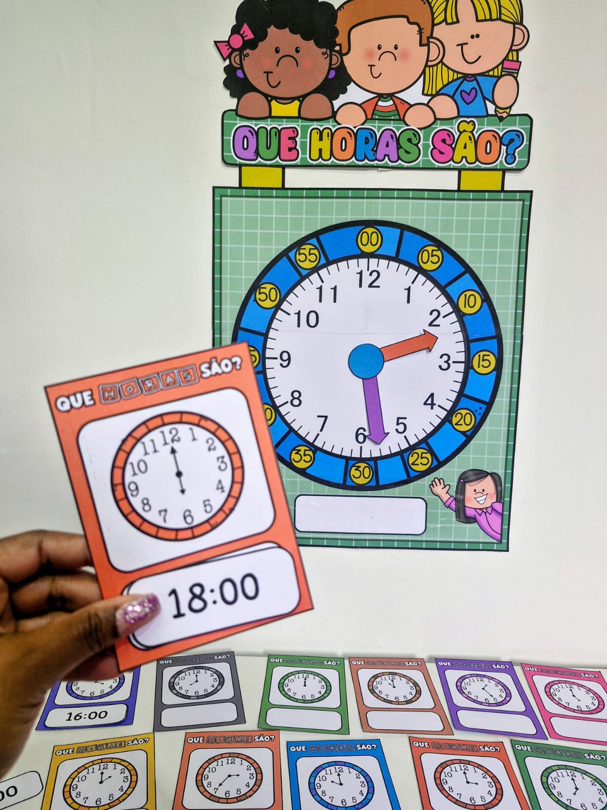 O Kit Que Horas São? é um recurso pedagógico desenvolvido para trabalhar a leitura das horas de maneira interativa, concreta e significativa.