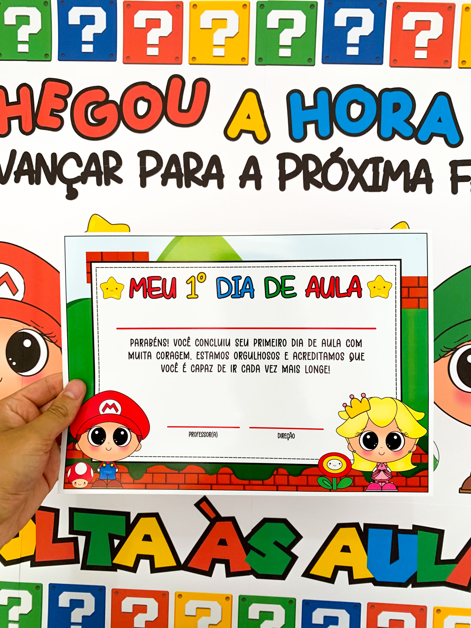O Kit Super Mário chegou para transformar o primeiro dia de aula em uma verdadeira aventura — do jeitinho que os pequenos (e os professores!) adoram! 🍄⭐